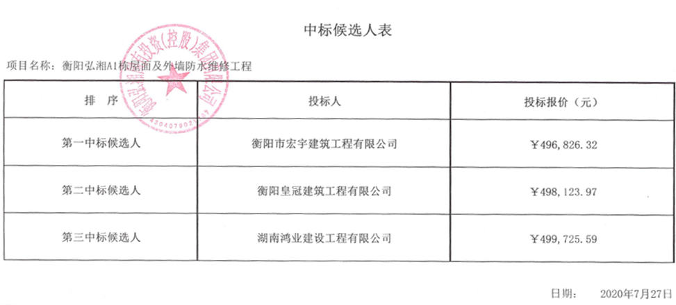 长丰动力公司厂房漏水维修项目公开比选中选候选人公示
