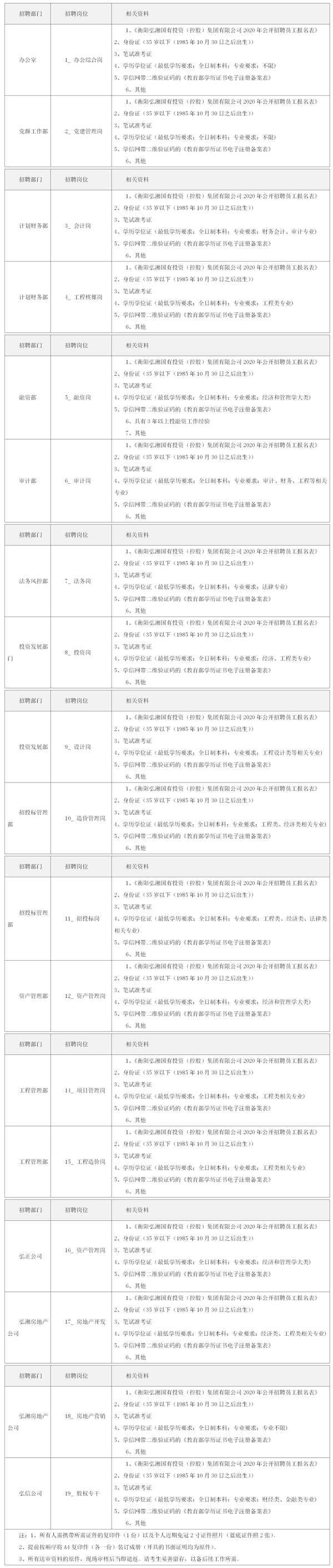 衡阳弘湘国有投资(控股)集团有限公司2020年公开招聘员工资格审查及面试公告