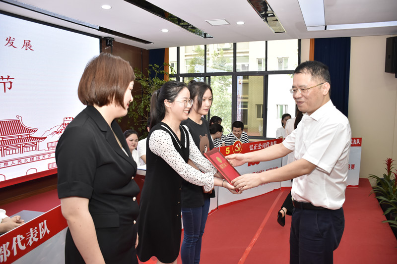 活动最后是激动人心的颁奖环节,一支部一队获得一等奖,弘正公司队获得二等奖,一支部二队获得三等奖,弘湘国投主要负责人为获奖队伍颁奖。