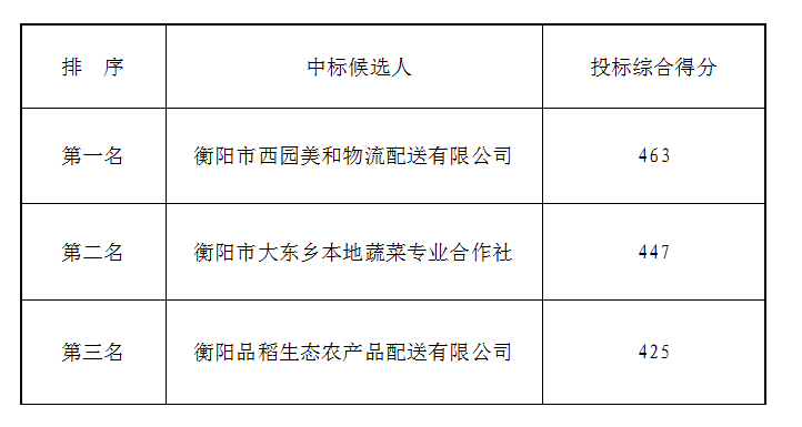 衡阳弘湘食堂食材(蔬菜类)公开比选候选人公示