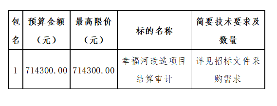 内容:负责完成衡阳市湘江流域重金属污染综合治理幸福河改造项目结算审计工作,具体服务内容见招标文件采购需求。