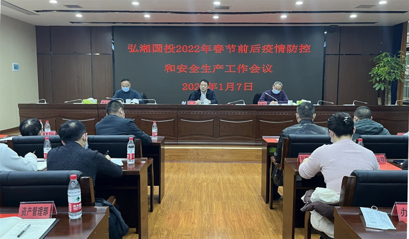 为切实做好2022年春节前后疫情防控和安全生产工作,1月7日,弘湘国投党委书记、董事长刘军主持召开2022年春节期间疫情防控和安全生产工作部署会,明确工作重点,强化工作措施,压实工作责任,确保疫情防控和安全生产形势持续稳定。