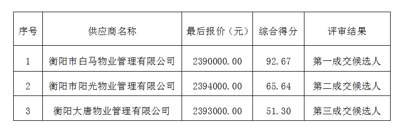 成交供应商名称:衡阳市白马物业管理有限公司