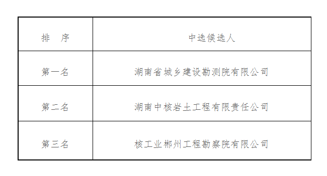 湘江低碳经济产业轴(一期)项目碧塘路、跃林路、红桥路三条道路地勘服务单位比选于2022年4月21日上午9时00分(北京时间)进行了比选开标、评标活动,本项目采用“低价中标法”,经评审小组综合评审,现将中选候选人排名结果公示如下: