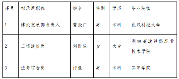 衡阳视界科技发展有限公司 拟录用人员公示公告