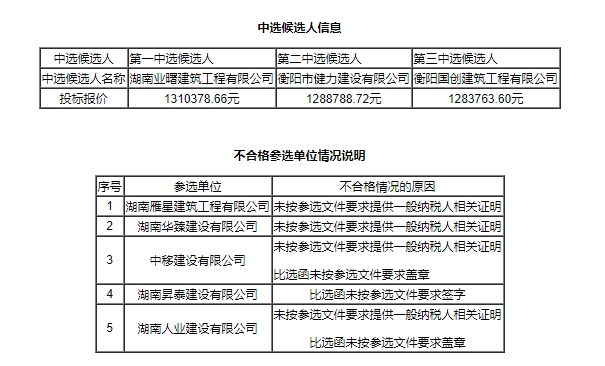 建湘工业文化街区计量产业“两会一展”厂房提质改造3#、6#、8#楼栋扩大劳务(专业工程)项目 比选于2025年5月16日在衡阳国投4栋3楼评标室进行了比选开标、评标活动,评标委员会按照规定的评标办法进行评审,推荐以下三名中选候选人(排序),现将相关信息予以公示。