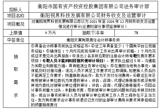 衡阳视界科技发展有限公司财务收支及运营审计项目抽取结果公示