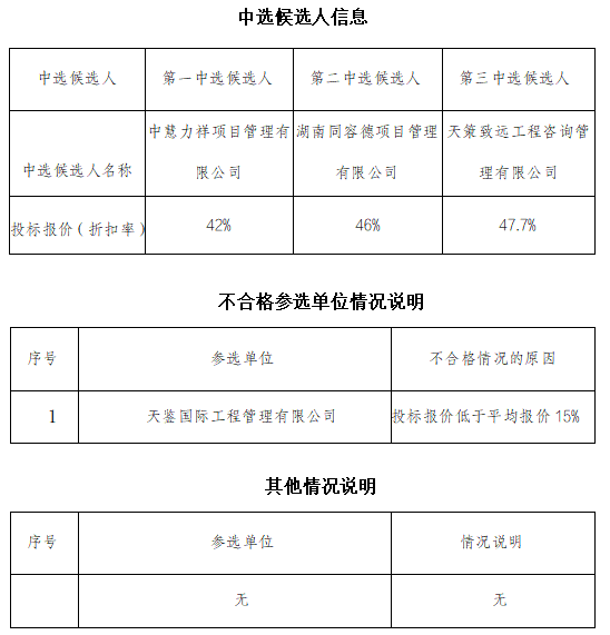 中选候选人公示时间为2日(2026年1月19日至2026年1月20日止)。公示期间,参选人和其他利害关系人如有异议,应按相关规定提出异议或投诉。若无异议,公示期满后,比选人将确定以上第一中选候选人为该项目的中选人。