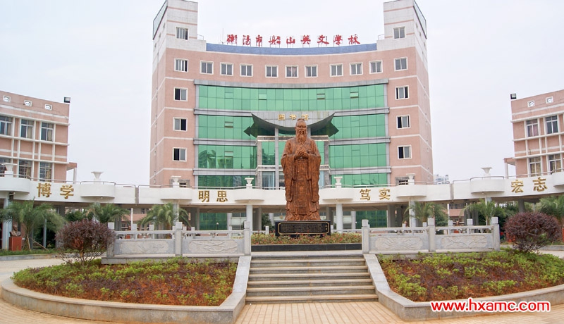 学校位于风光秀丽的衡阳市区蒸水河畔,与闻名遐尔的四大古代书院——石鼓书院毗邻。园林式的校园占地200多亩,建筑面积8万平方米。独立的中、小学教学楼、配备空调的学生公寓以及中、小学生运动场和学校图书馆、实验楼、体育馆、形体房、游泳池、风雨走廊浑然一体。微机房、语音室和校园网设施齐全。校园里4.3万平方米的绿化面积,绿草如茵,繁花似锦,校园环境秀丽,景色宜人,为衡阳市园林式民办学校。