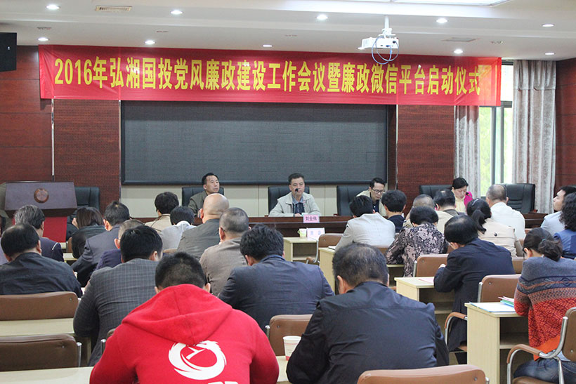 会上,各部室、各子公司主要负责人还分别向集团公司党组递交了《弘湘国投集团2016年度党风廉政建设和反腐败工作任务责任书》,并举行了“廉政弘湘 助力发展”微信平台启动仪式。